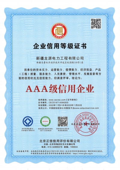 企業信用等級證書